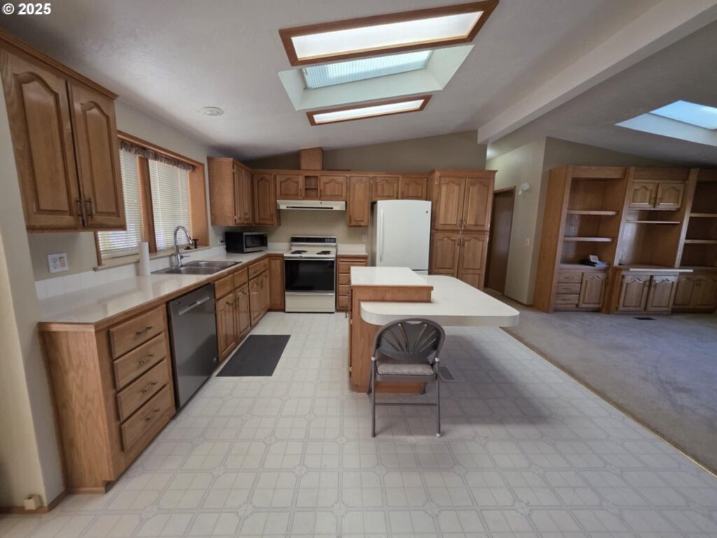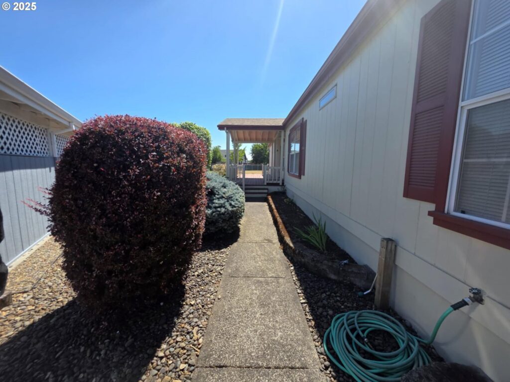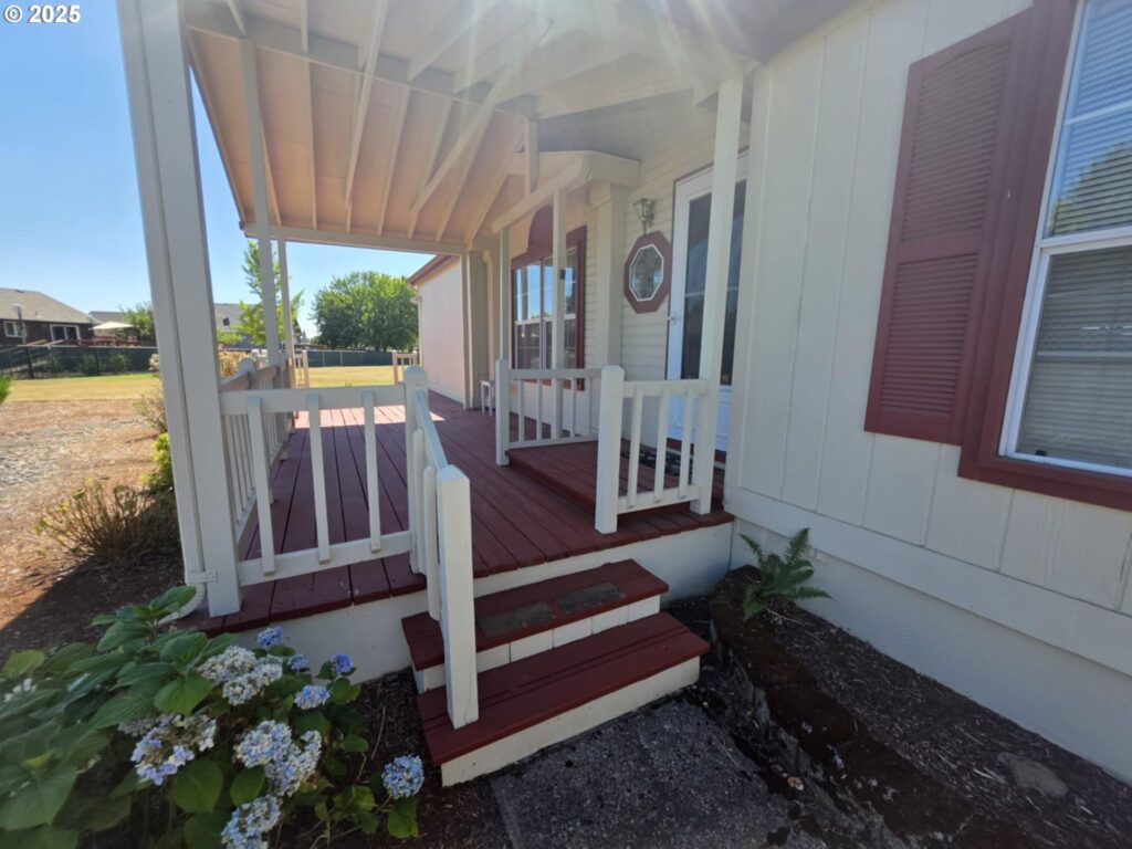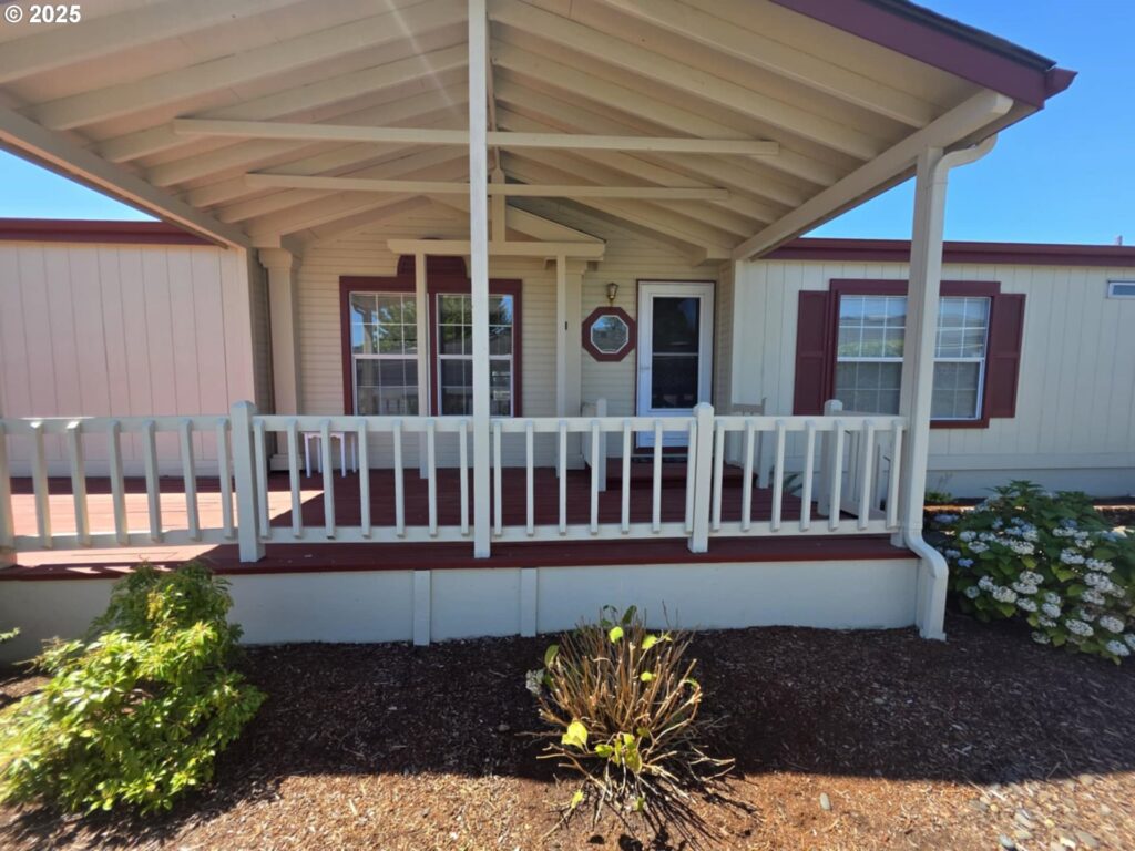Great location in the Homestead Community. This home is on the back row of the park and looks over the fields & hills. This home is 1848 SF with 3 bedrooms, 2 bath. This home also has formal living and dining rooms, an eat-in kitchen plus family room with built-in cabinets. Kitchen is large with an island. The front porch has tons of room and is covered. The yard is large and low maintenance, yet there’s plenty of room for gardening. All appliances are included! Space fee is $755 per month and includes sewer and water.Exterior paint 2023, repiped, Furnace & Heat pump in 2017, water heater 2019. Workshop is approximately 10’x20′ with power and shelving.