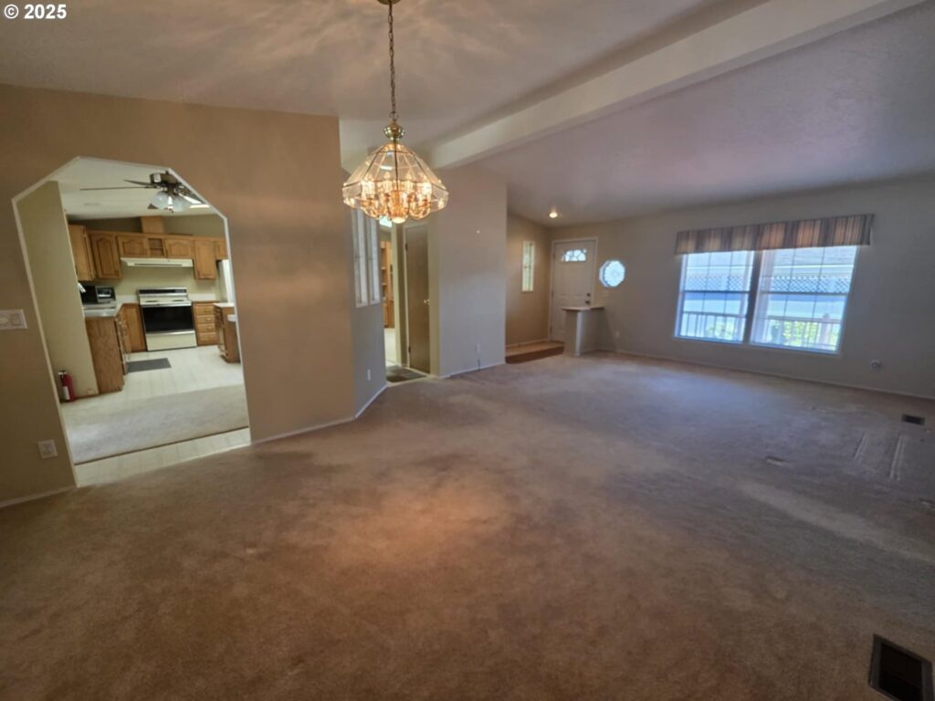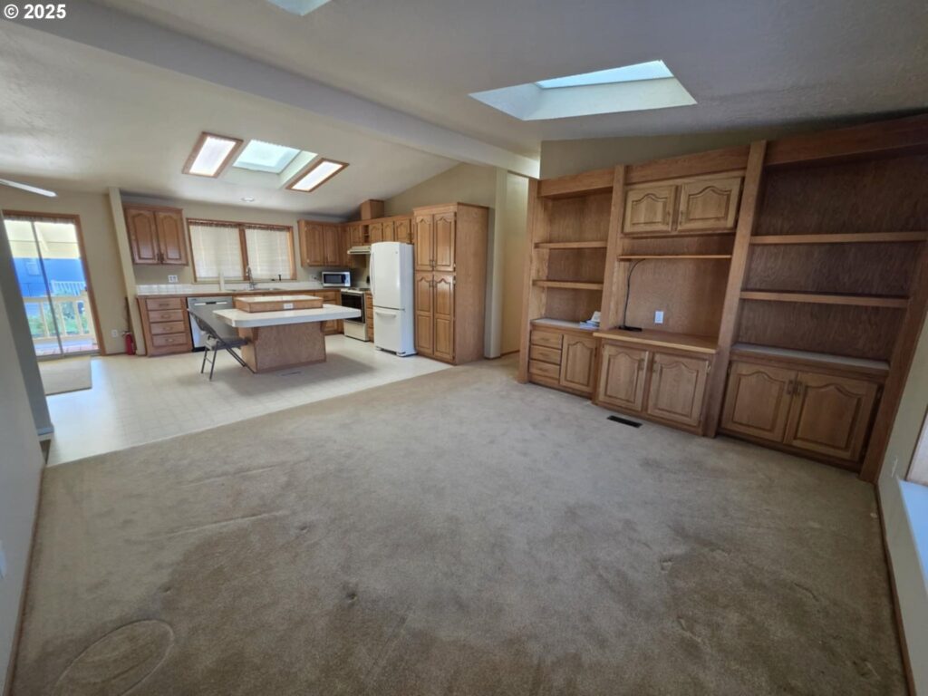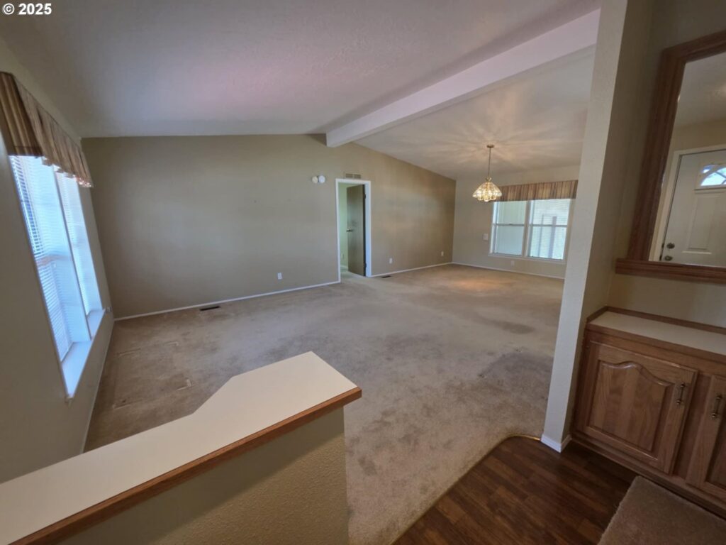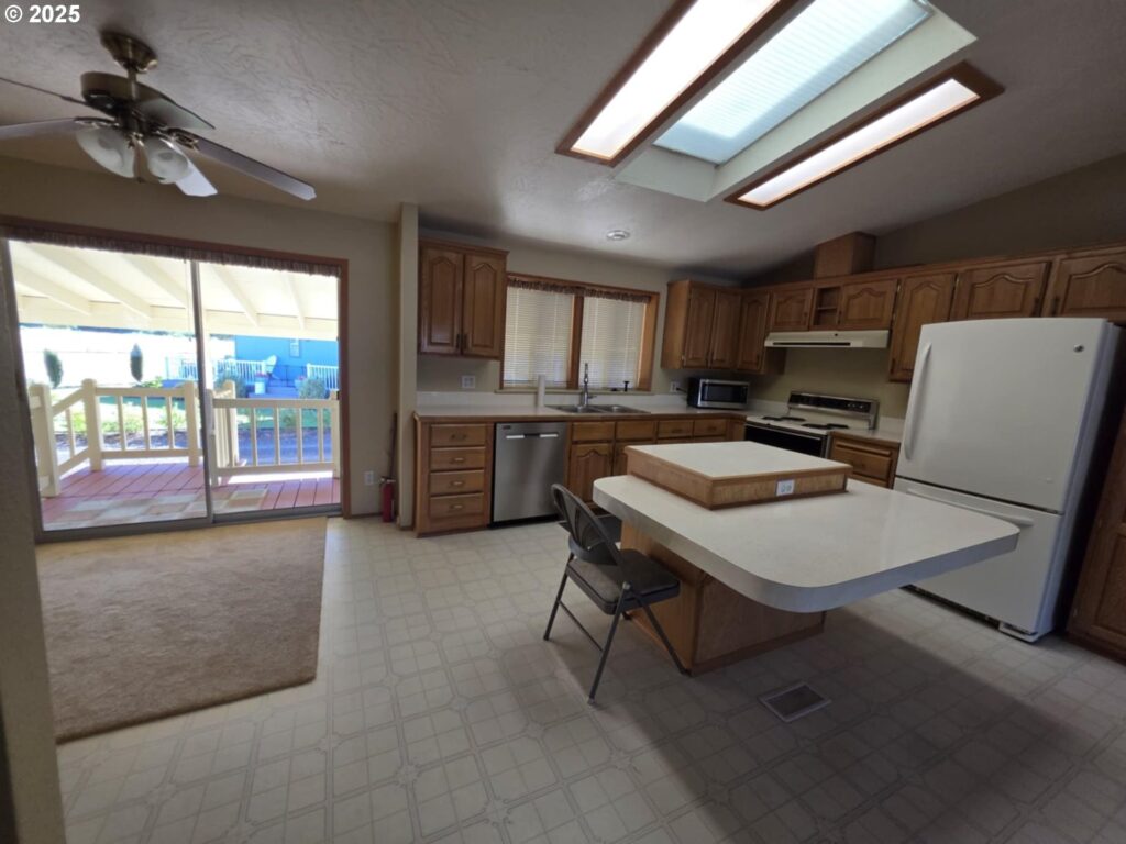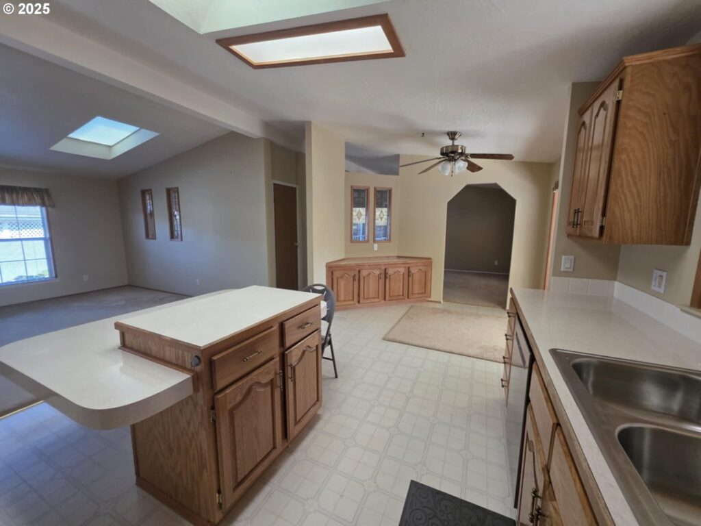 Great location in the Homestead Community. This home is on the back row of the park and looks over the fields & hills. This home is 1848 SF with 3 bedrooms, 2 bath. This home also has formal living and dining rooms, an eat-in kitchen plus family room with built-in cabinets. Kitchen is large with an island. The front porch has tons of room and is covered. The yard is large and low maintenance, yet there’s plenty of room for gardening. All appliances are included! Space fee is $755 per month and includes sewer and water.Exterior paint 2023, repiped, Furnace & Heat pump in 2017, water heater 2019. Workshop is approximately 10’x20′ with power and shelving.