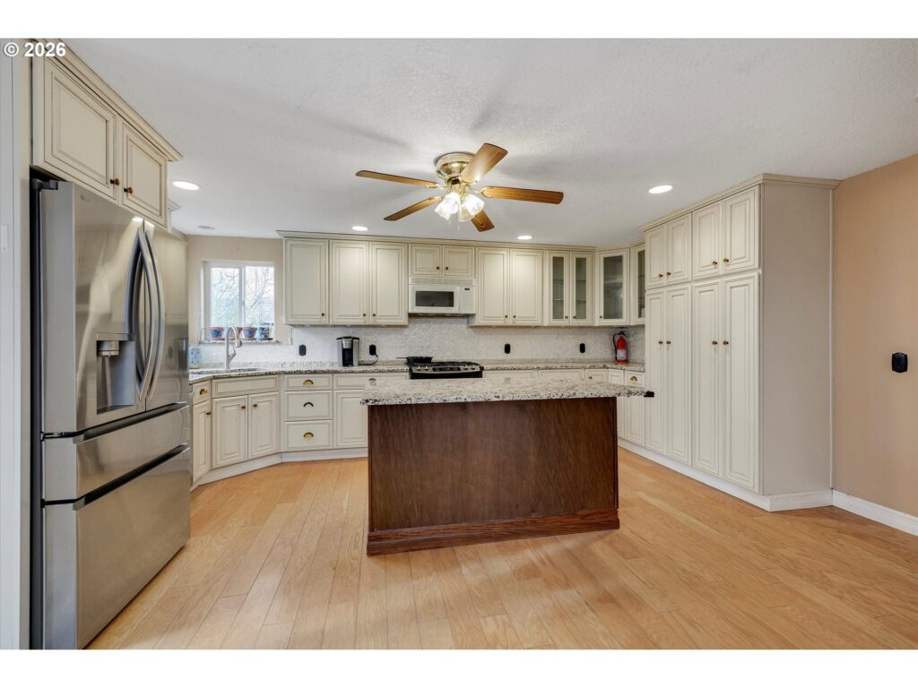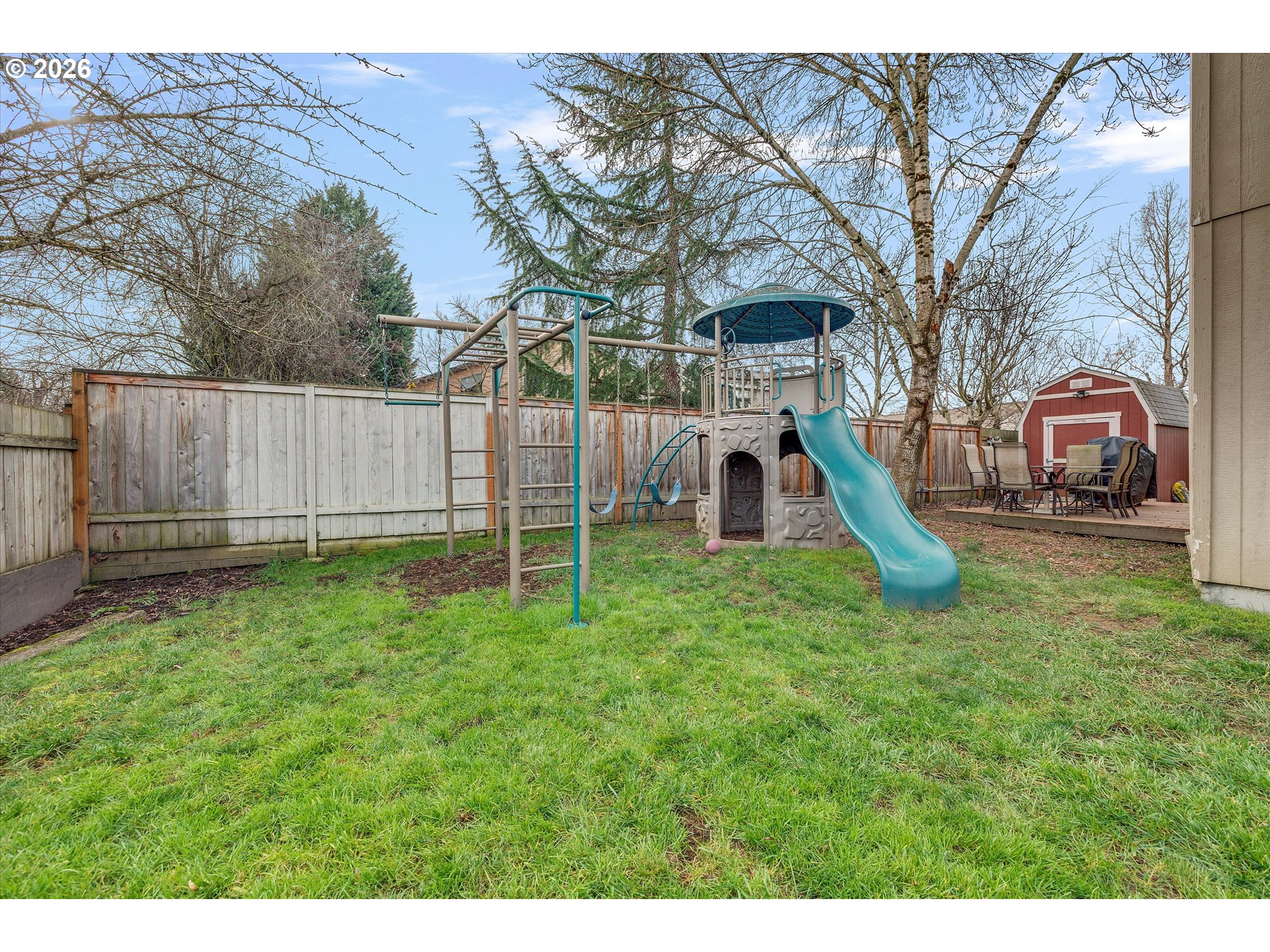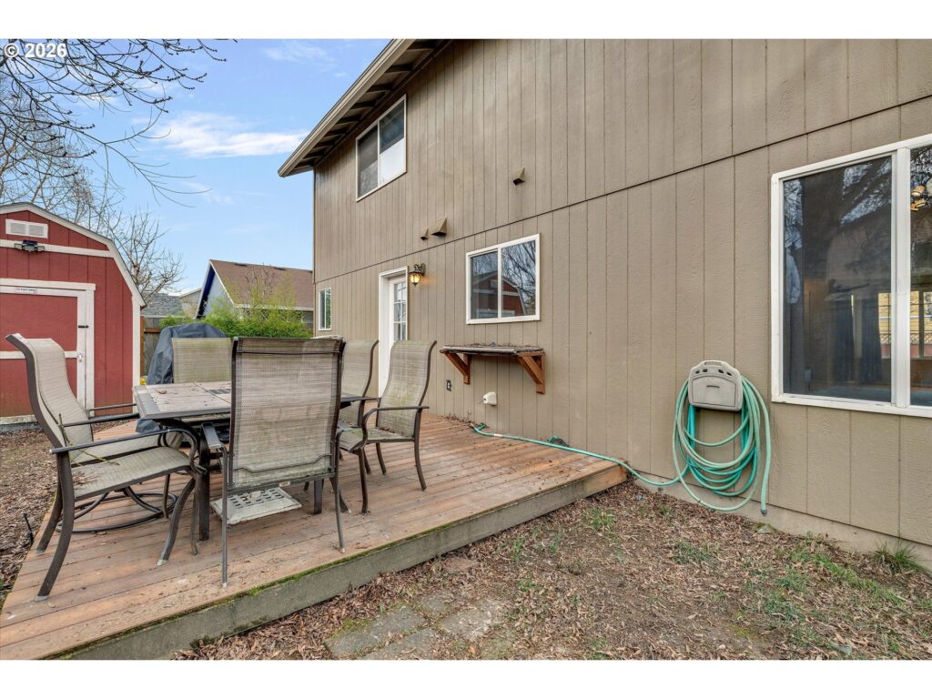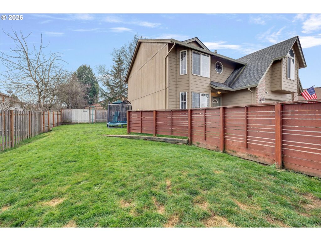 Tucked away on the 70th Court cul-de-sac, this delightful Hillsboro residence offers roomy bedrooms, with a spacious primary suite. The custom kitchen features maple cabinetry, soft-close drawers, a mother-of-pearl backsplash, an island, and a gas range. Step outside to a fully fenced backyard complete with a deck, a Tuff Shed, a play structure, lawn, and a newly installed walkway that leads directly to the driveway and attached two-car garage. The extended driveway accommodates plenty of parking, and the neighborhood has no HOA restrictions. All appliances and the play structure are included, making this home truly move-in ready and ideal for comfortable everyday living. [Home Energy Score = 5. HES Report at https://rpt.greenbuildingregistry.com/hes/OR10244017]