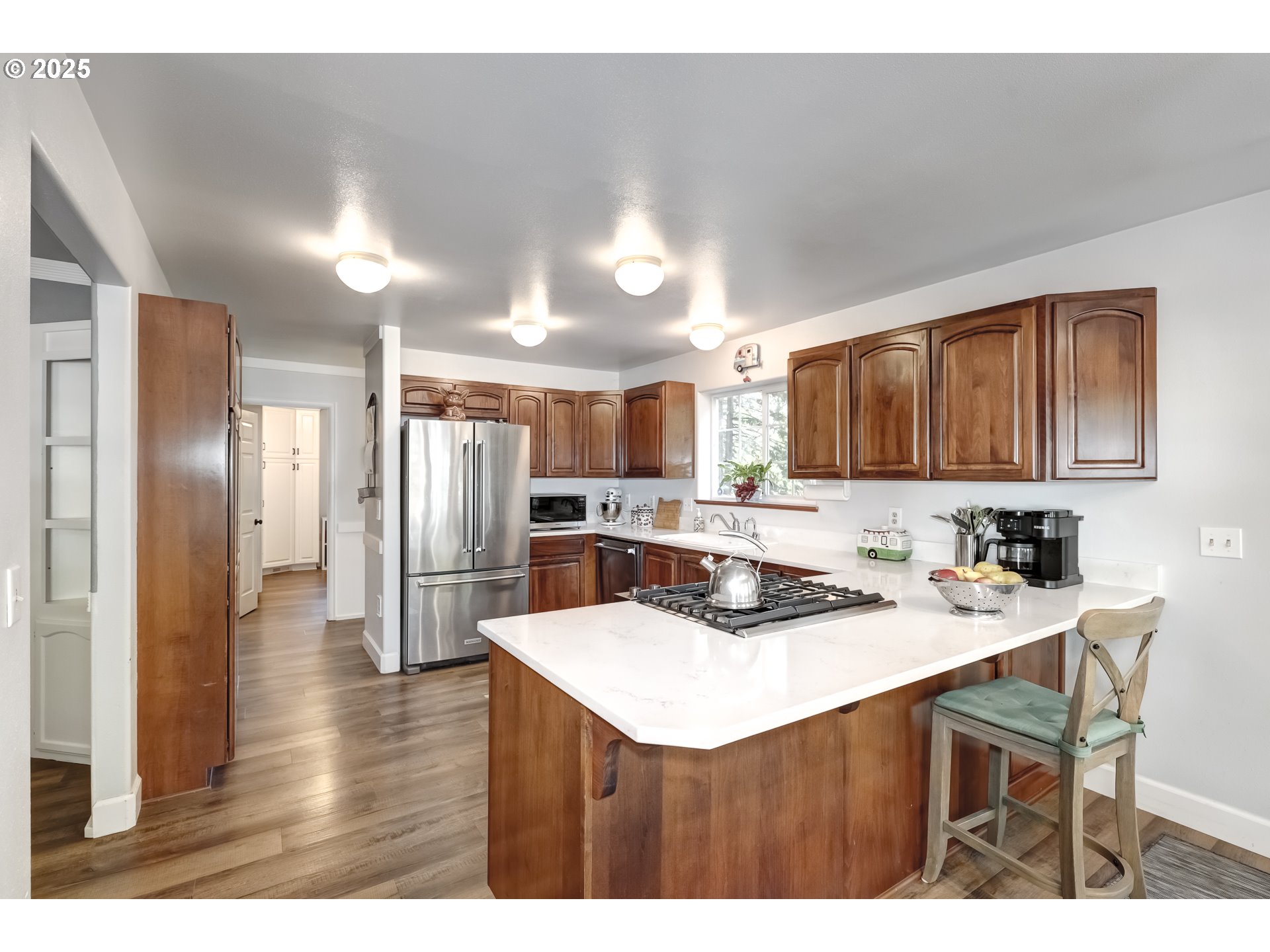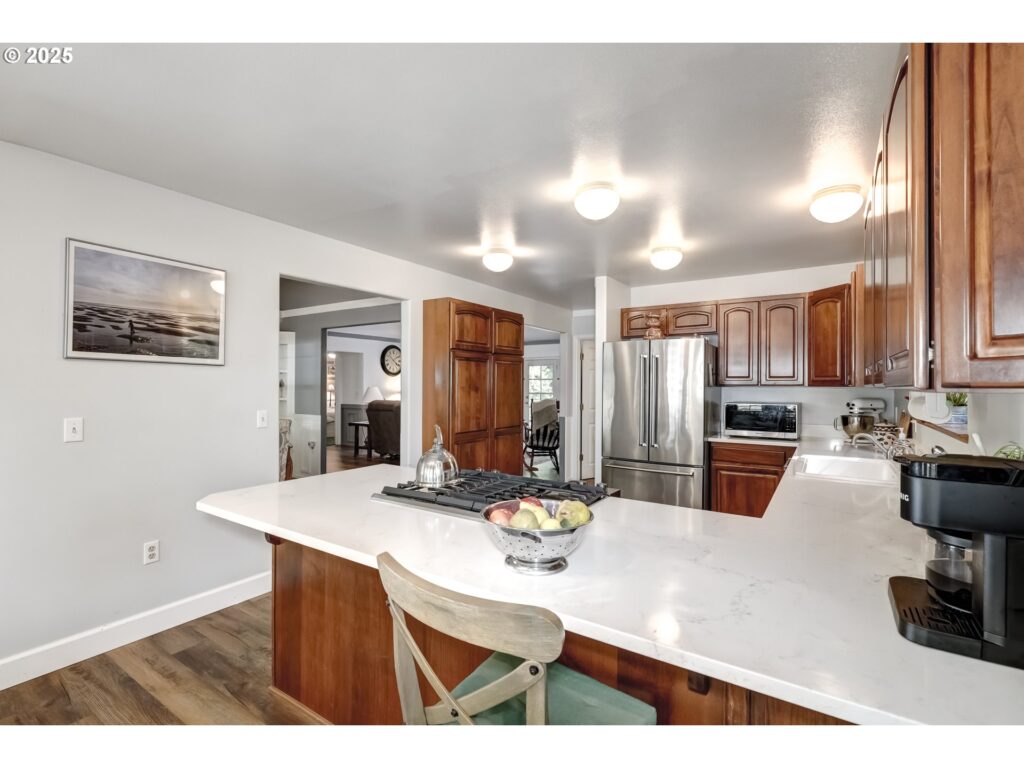 This inviting 4-bedroom home, with the Primary Bedroom on the main, sits at the end of a quiet street on Corey Hill. The main level has a roomy eat-in kitchen with stainless steel appliances including a new gas range, quartz countertops, a Insta-Hot dispenser, and easy access to large decks and a covered porch. Downstairs, you’ll find full mother-in-law quarters with a private entrance. The property is just under an acre and includes an automatic 25kw natural gas generator, plus a 1000 square foot shop and RV storage with full hookups. Washer, Dryer, Refrigerator, and 2 freezers included. A front porch swing(currently uninstalled) also comes with the property.